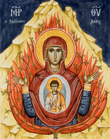 The burning bush is also an image of Mary (CCC 724). She is consumed by the fire of the Holy Spirit. She gives flesh to the Only Begotten Son. O Mary, burning flame of my heart, lead me to adore the Holy One in your womb at Christmas. Amen.