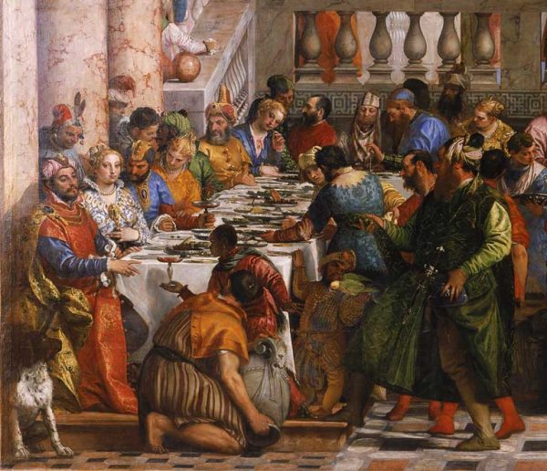 Holding this sonnet in our hearts, I draw your attention to Paolo Veronse’s masterpiece of this Gospel scene. There’s much going on in this masterpiece.